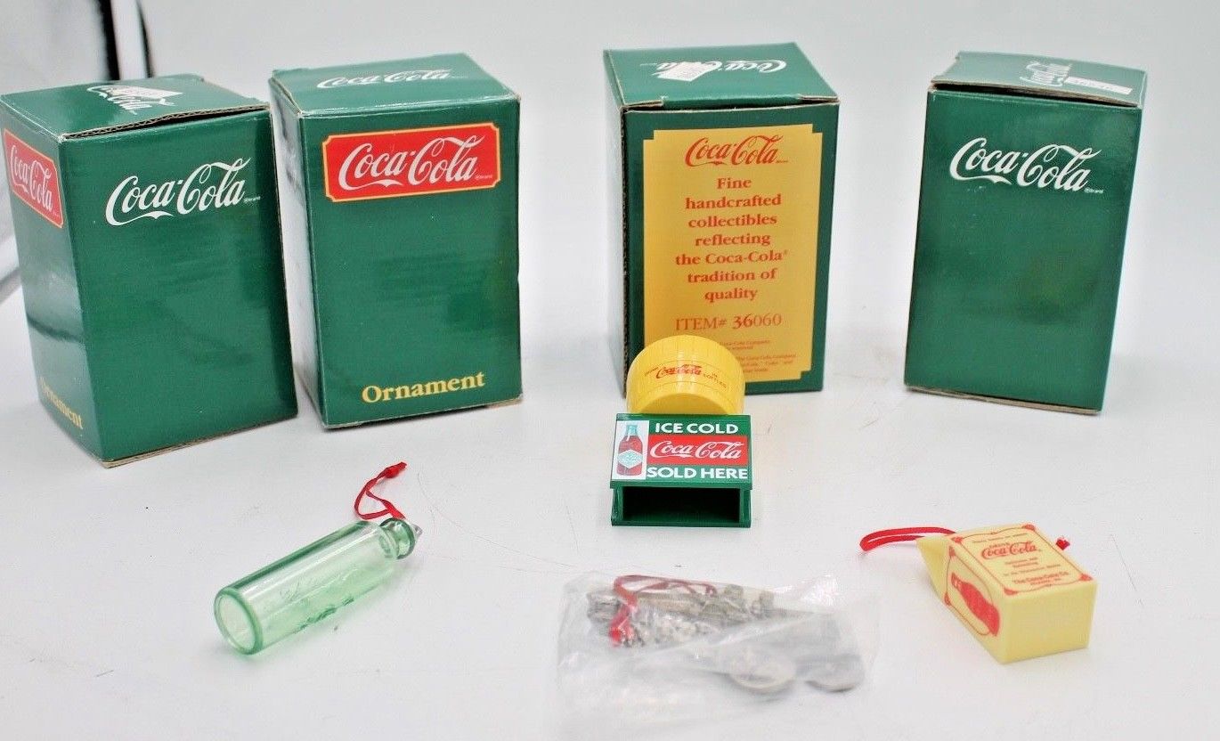 Title (ebay affiliate link): Four (4) Coca Cola Coke Ornaments NIB BOTTLE, CARTON, TUB, DELIVERY TRUCK in BOX