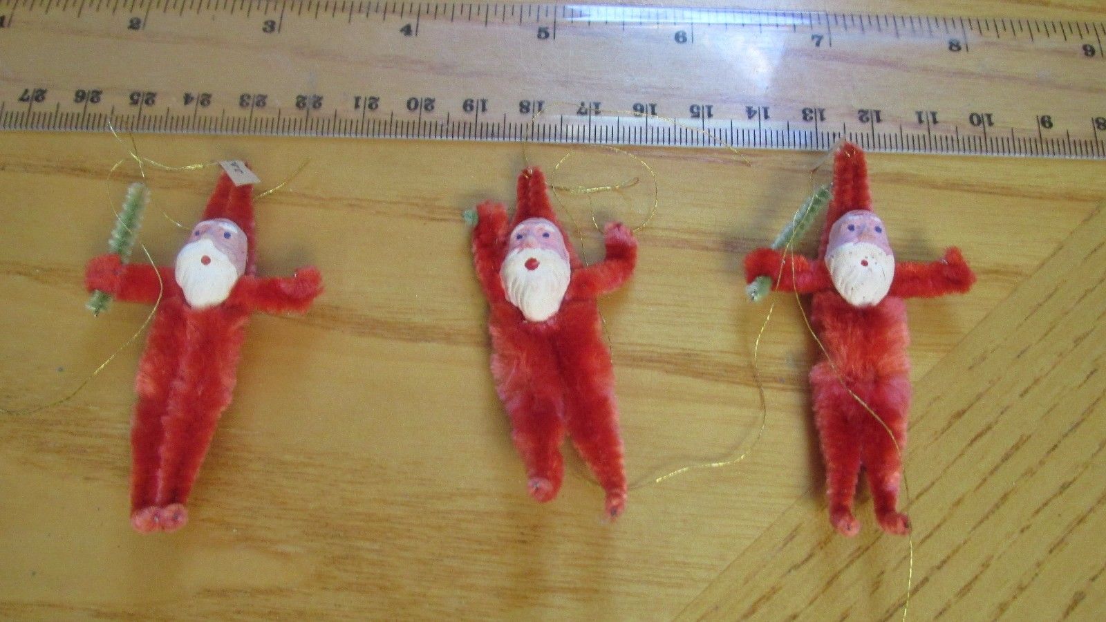 ANTIQUE VINTAGE SANTA ORNAMENT LOT OF 3 CHENILLE CLAY FACES 2 1/4 INCHES JAPAN