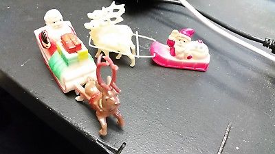Antique Qty of 2 Santa / Sleigh / Presents / Reindeer Figures
