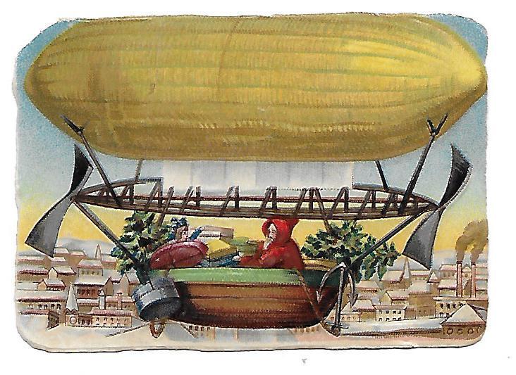 Title (ebay affiliate link): Victorian Antique Diecut Scrap of Santa Bringing Presents in a Hot-Air Balloon