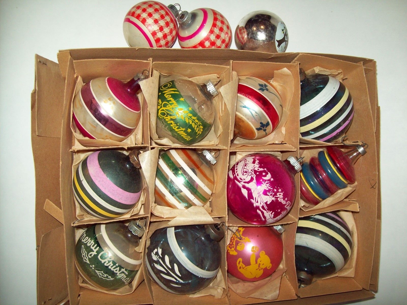 Title (ebay affiliate link): VINTAGE Shiny Brite Christmas ornaments mercury glass flocked stripe unsilvered