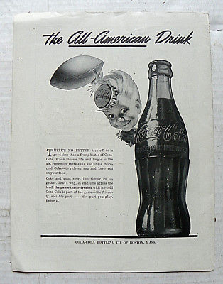 Title (ebay affiliate link): 1945 HARVARD FOOTBALL PROGRAM WITH "COCA-COLA ~ THE ALL-AMERICAN DRINK" AD.