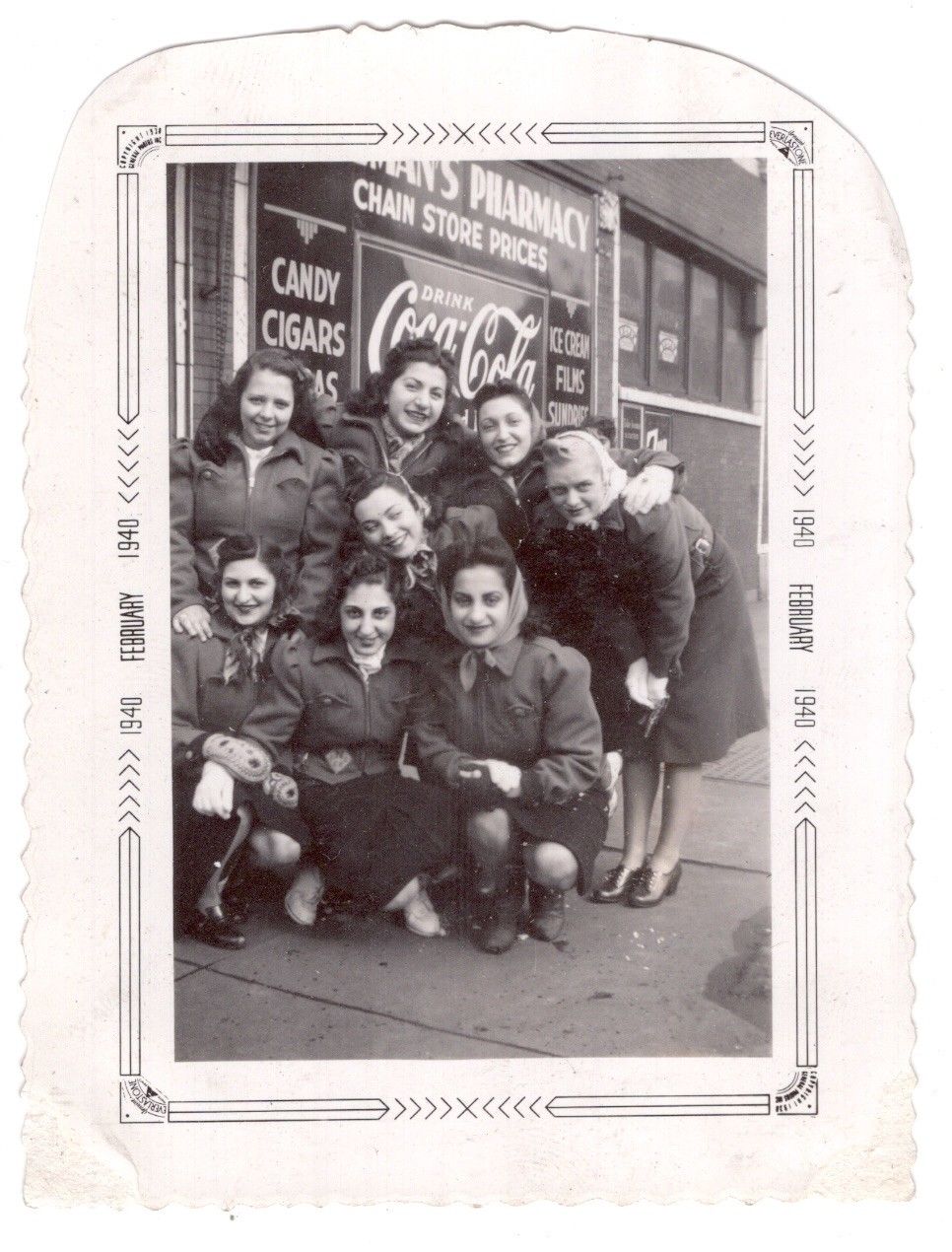 #84 vintage ORIG. PHOTO GROUP CUTE WOMEN EMBRACE PHARMACY COCA COLA ADVERTISING