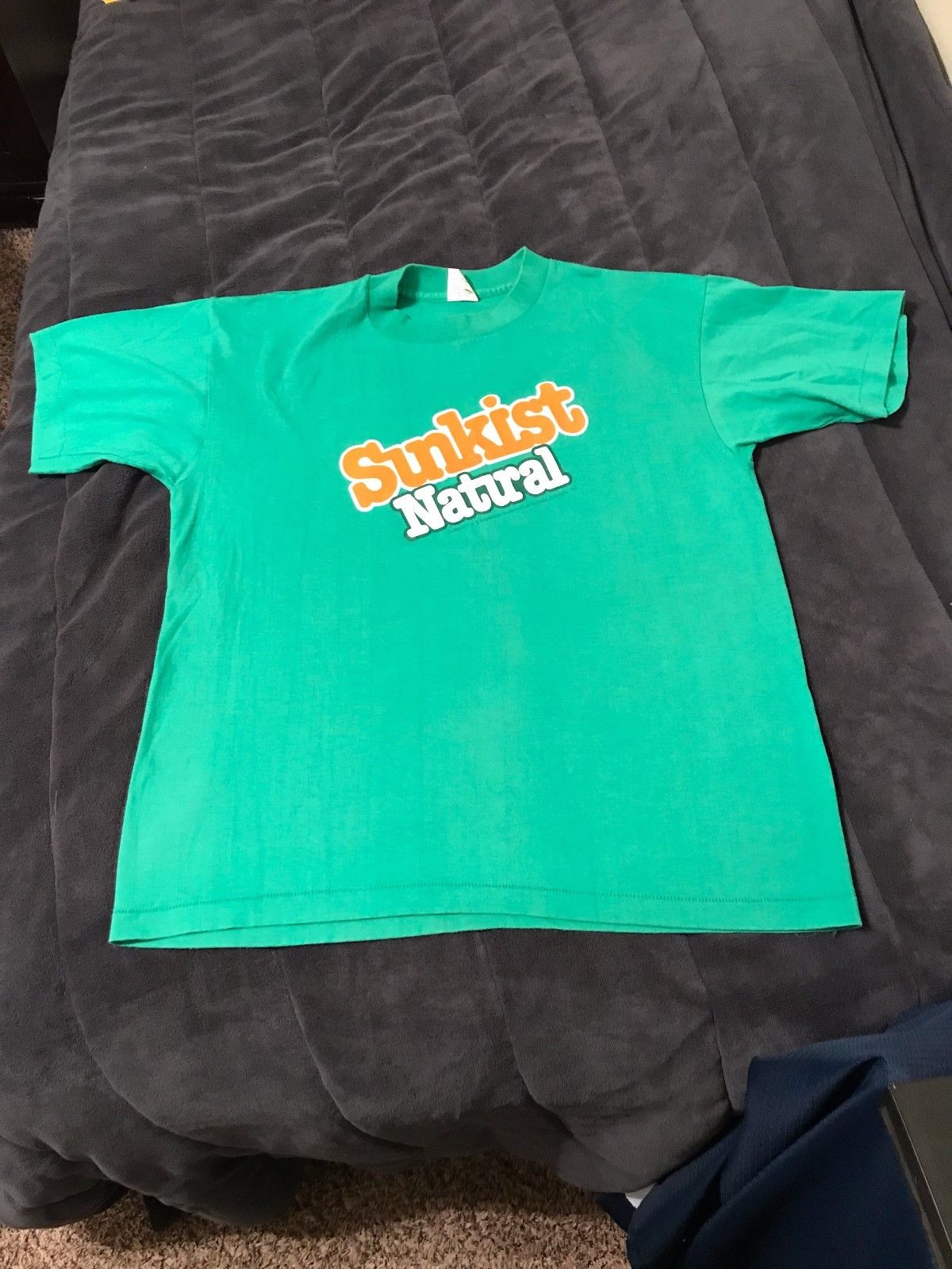 Title (ebay affiliate link): Vintage 1980''s Green Sunkist Natural T Shirt Large NOS 50/50 Blend