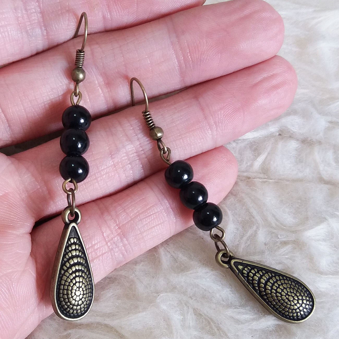 Title (ebay affiliate link): Womens Vintage Antique Plastic Teardrop Black Beads Dangle Drop Hook Earrings