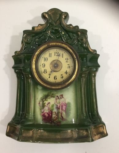 Title (ebay affiliate link): Antique American Victorian Green Glazed Porcelain Mantel Clock And Case