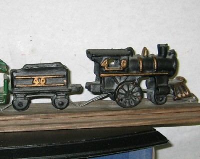 CAST IRON TRAIN SET MOUNTED ON DISPLAY TACK