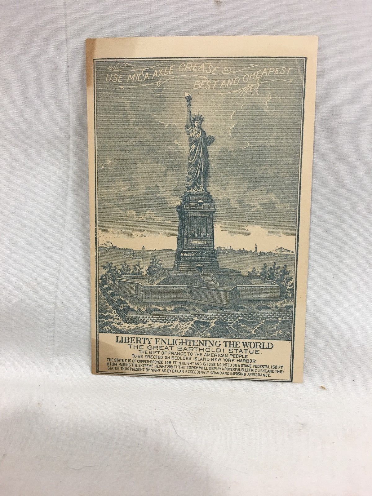 Title (ebay affiliate link): Orig. Antique c1880''s Victorian Statue of Liberty Mica Axel Grease Trade Card