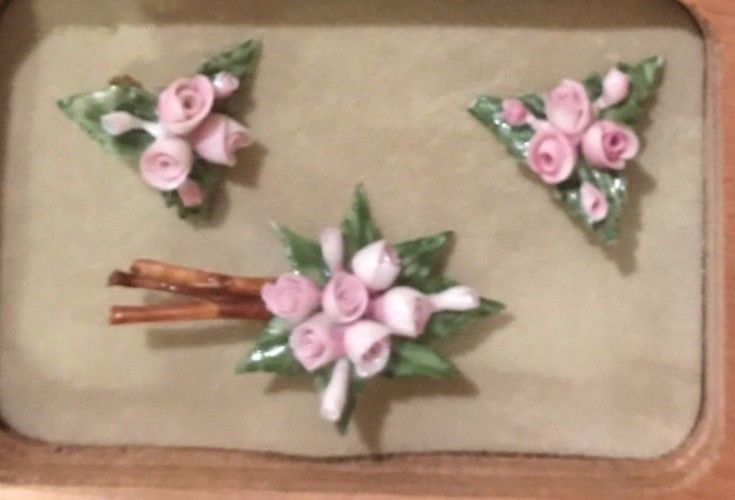 Title (ebay affiliate link): Capodimonte rose pin and earring set, made in italy, in wooden box