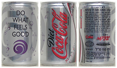 Title (ebay affiliate link): Diet Coca Cola 'Do what feels good' can from Israel.