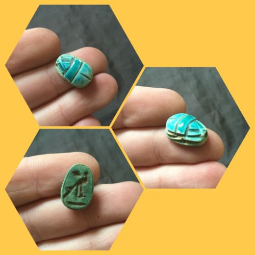 Title (ebay affiliate link): ANCIENT EGYPTIAN FAIENCE SCARAB BEETLE WITH HIEROGLYPHS, MIDDLE KINGDOM.