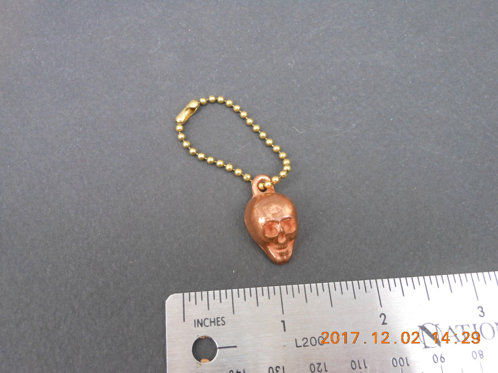 Vintage 1950s 1960s Keychain Metal Copper Skull