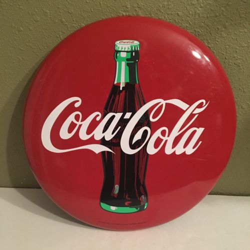 Title (ebay affiliate link): Vintage 1990 COCA-COLA 16" Round Metal Button Sign