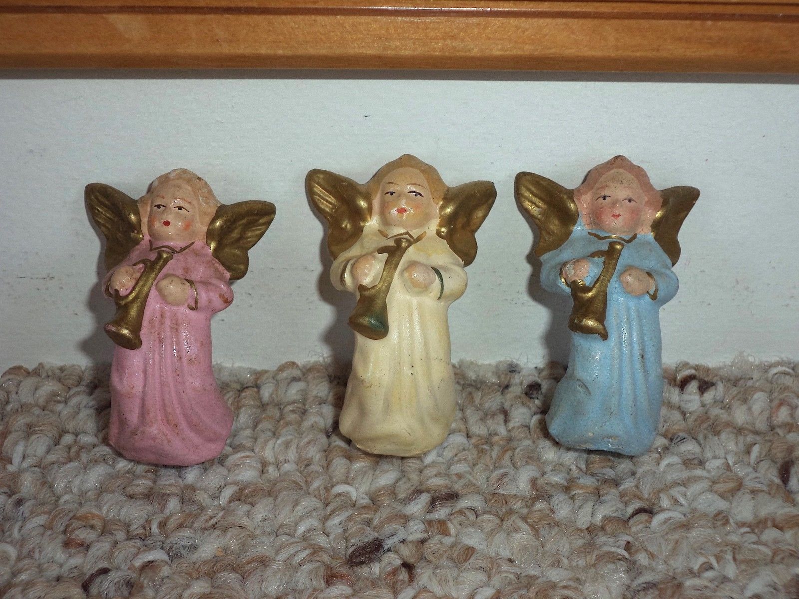Title (ebay affiliate link): VINTAGE PAPER MACHE COMPOSITION ANGEL BAND SET/3 U.S. ZONE GERMANY