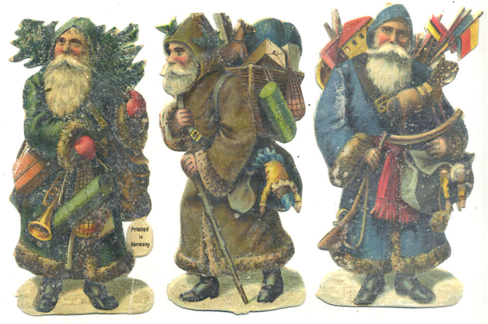 Title (ebay affiliate link): c1880s Three Die-Cut Color Lithographed Various SANTA CLAUSES German