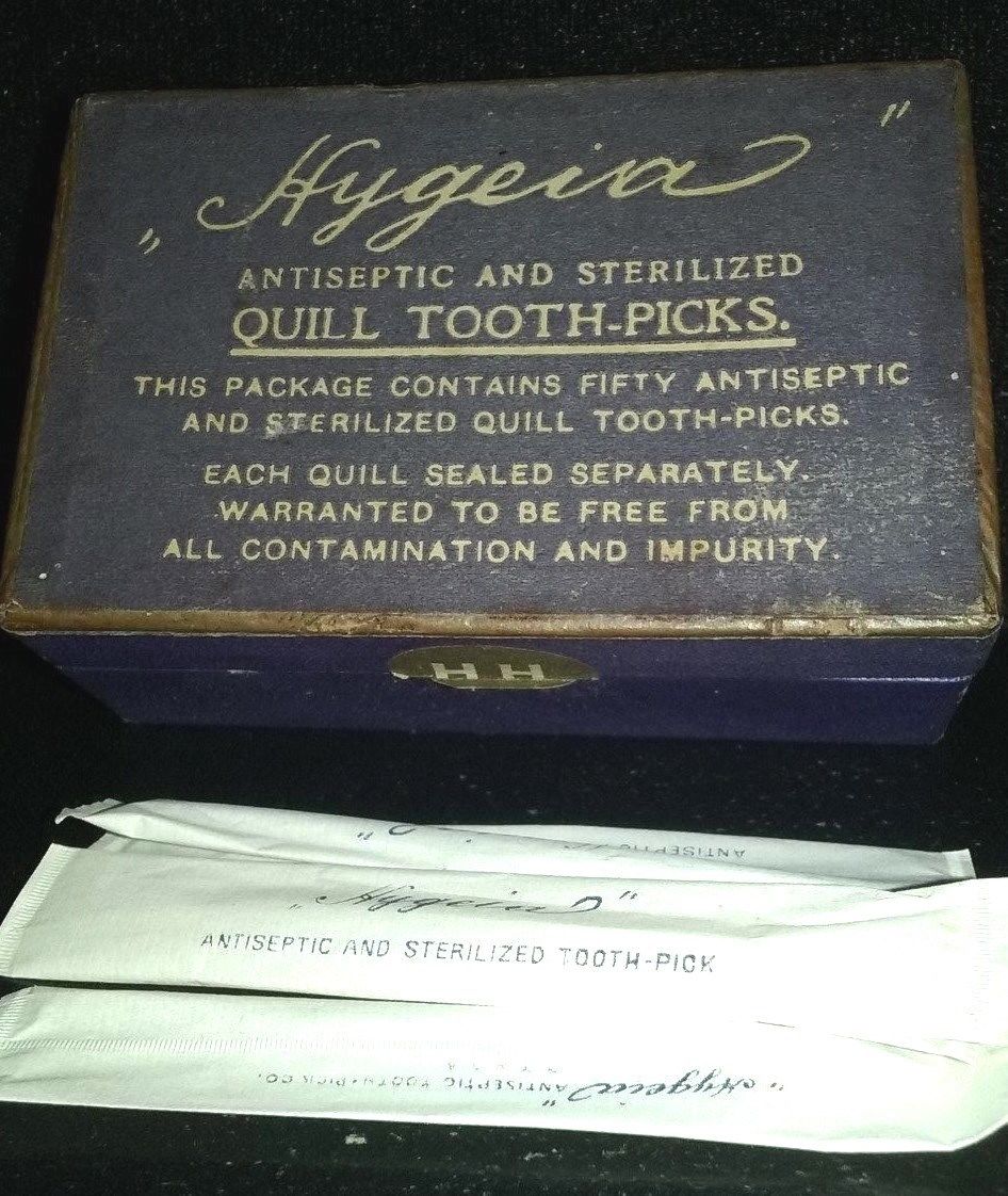 Title (ebay affiliate link): Antique Dental Box Original 1900''s Hygeia Goose Quill Tooth Picks Drugs