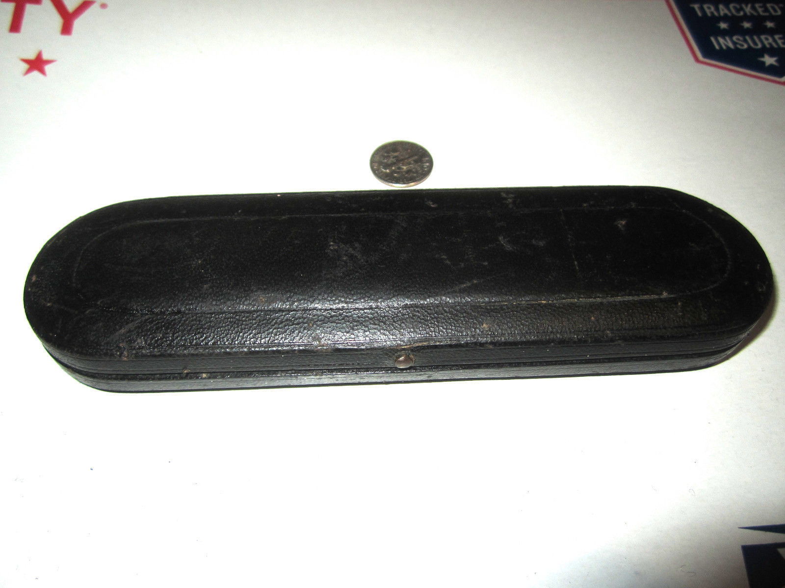 Title (ebay affiliate link): ANTIQUE LEATHER BOUND VELVET LINED EYEGLASS CASE W/ CLASP GOOD CONDITION