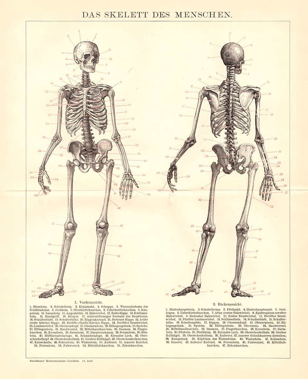 Title (ebay affiliate link): HUMAN SKELETON ANATOMY Engraving 1892 old historical german antique print