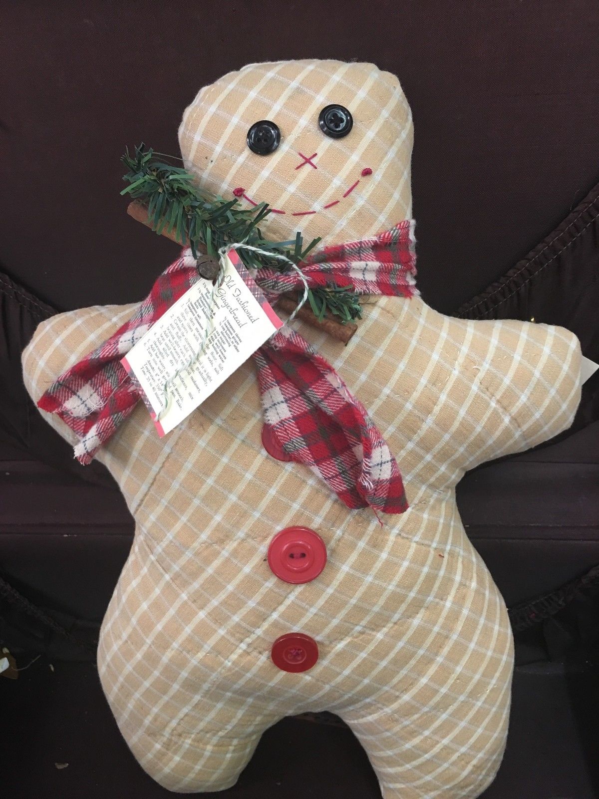 Title (ebay affiliate link): Prim Vintage Quilt Handmade OOAK Gingerbread Man pillow/Christmas, farmhouse