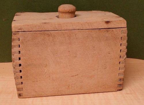 PRIMITIVE ANTIQUE WOODEN BUTTER PRESS MOLD NATURAL WOOD DOVE TAIL ORIGINAL