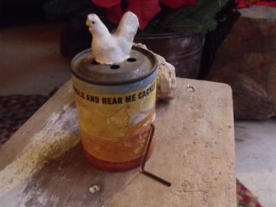 Old Primitive Vintage Tin Chicken Noisemaker Cackle Toy Tin Wire Handle Works!