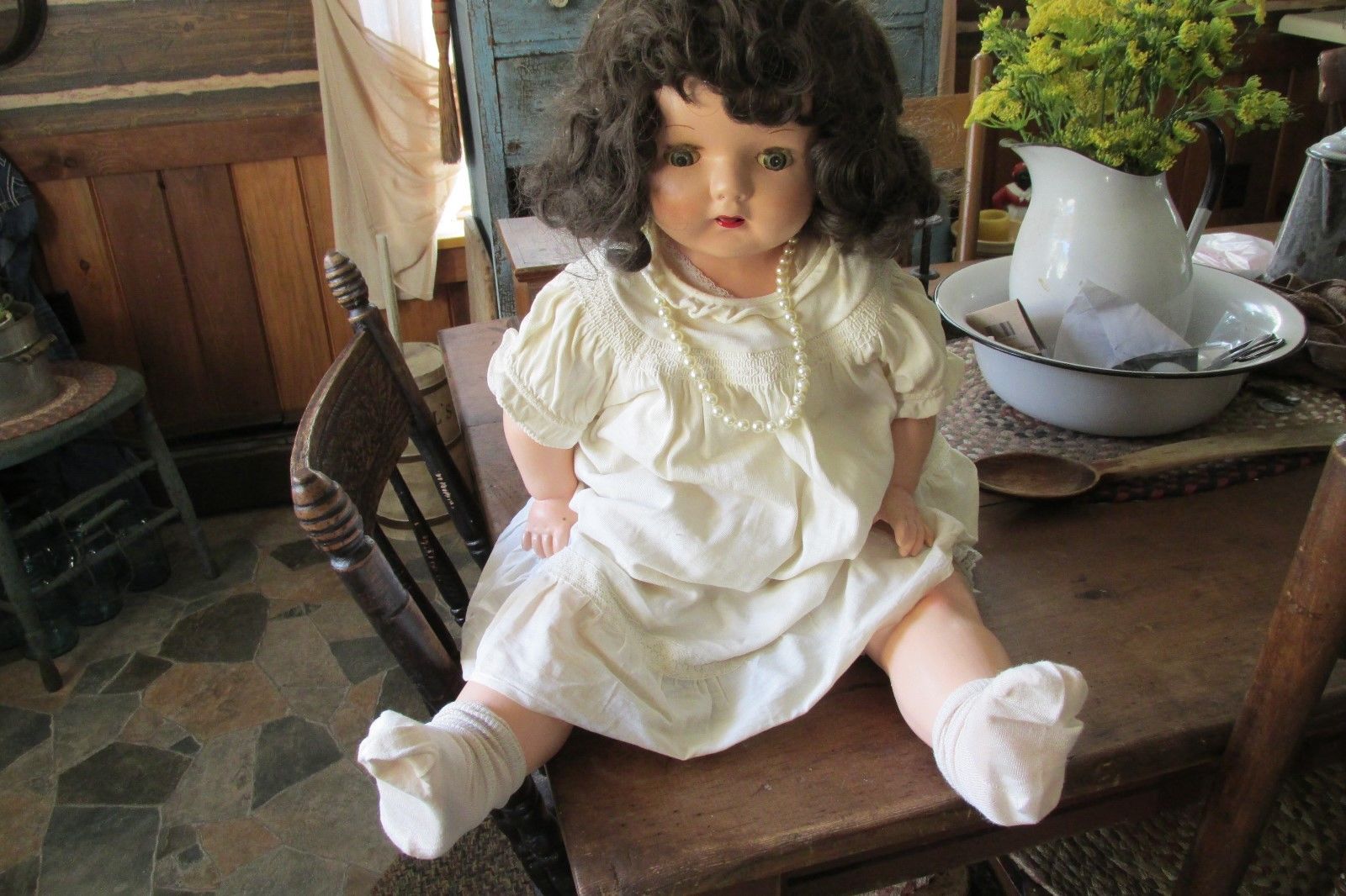 Title (ebay affiliate link): ANTIQUE VINTAGE DOLL ( LOOKS REAL ) 27" TALL ESTATE SALE FIND SLEEPY EYE''S