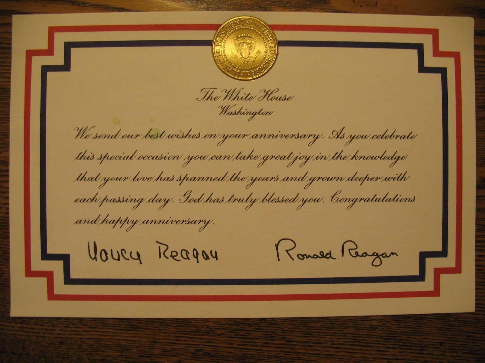 Title (ebay affiliate link): Ronald and Nancy Reagan congratulations on anniversary card