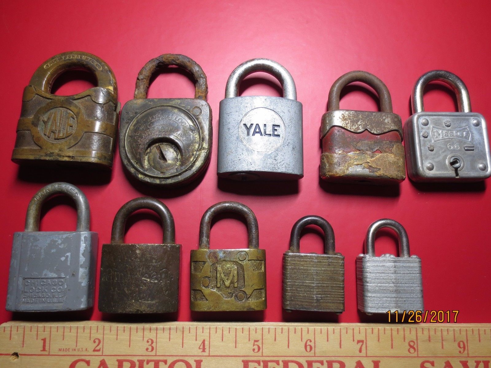 Title (ebay affiliate link): Lot of 10 Vintage Padlocks Yale Masterlock American Chicago lock No Keys