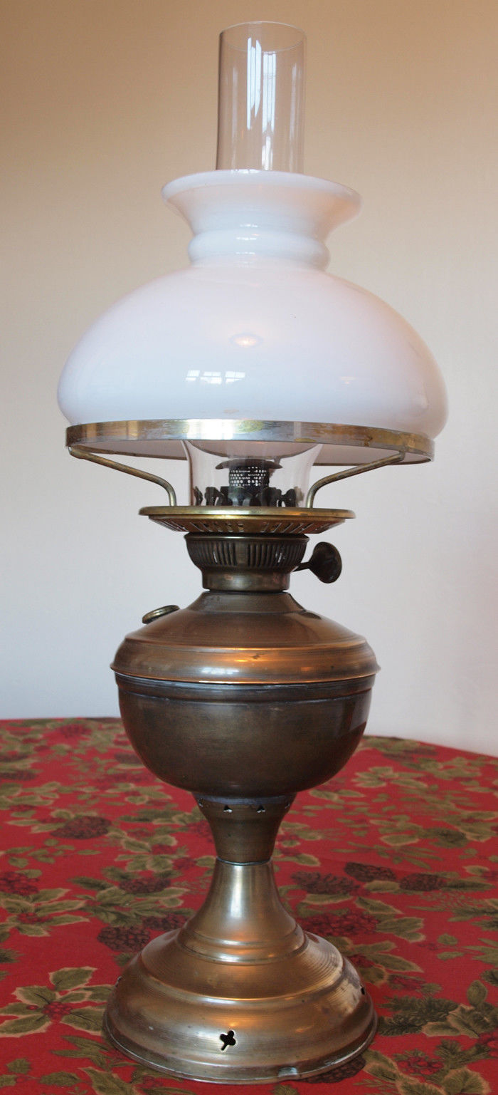 Vintage Brass Oil Lamp with Milk Glass Shade