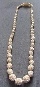 Antique Faux Ivory Carved Rose Bead Necklace Vintage