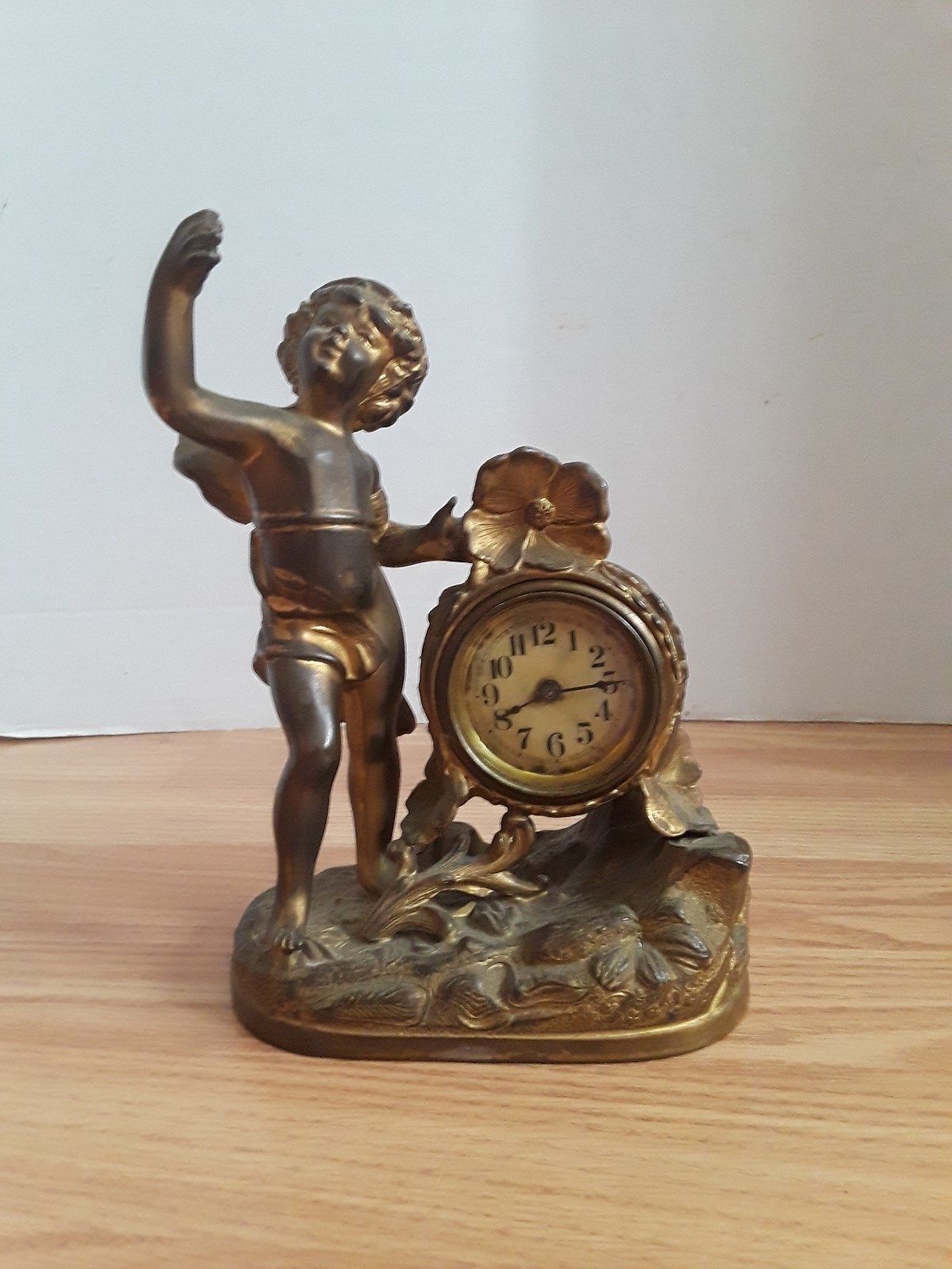 Title (ebay affiliate link): VINTAGE CHERUB ALARM CLOCK GOLD GILT BRONZE MANTLE ART NOUVEAU CAST