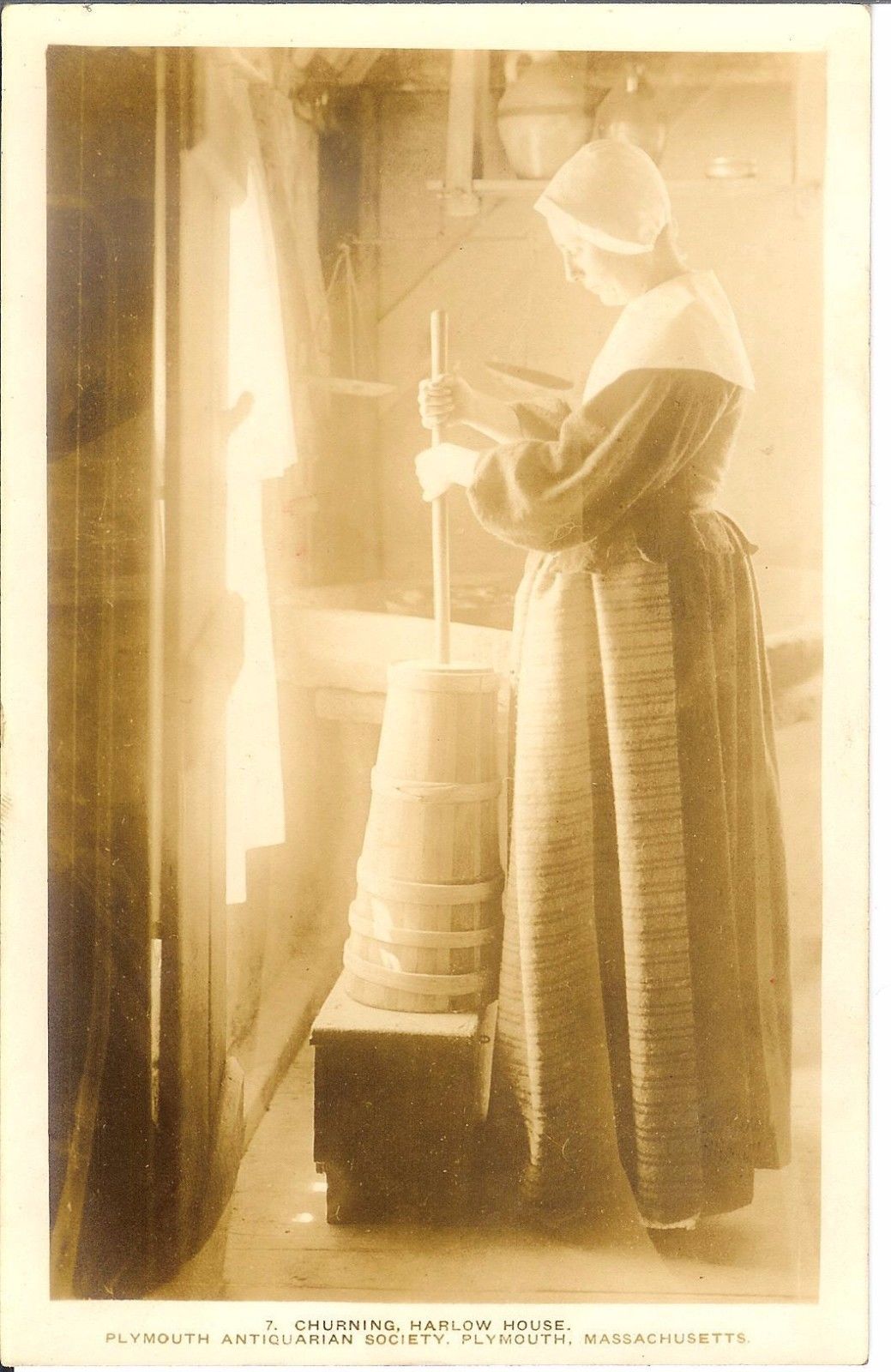 Antique Postcard Churning Butter at Harlow House Plymouth Antiquarian Society MA