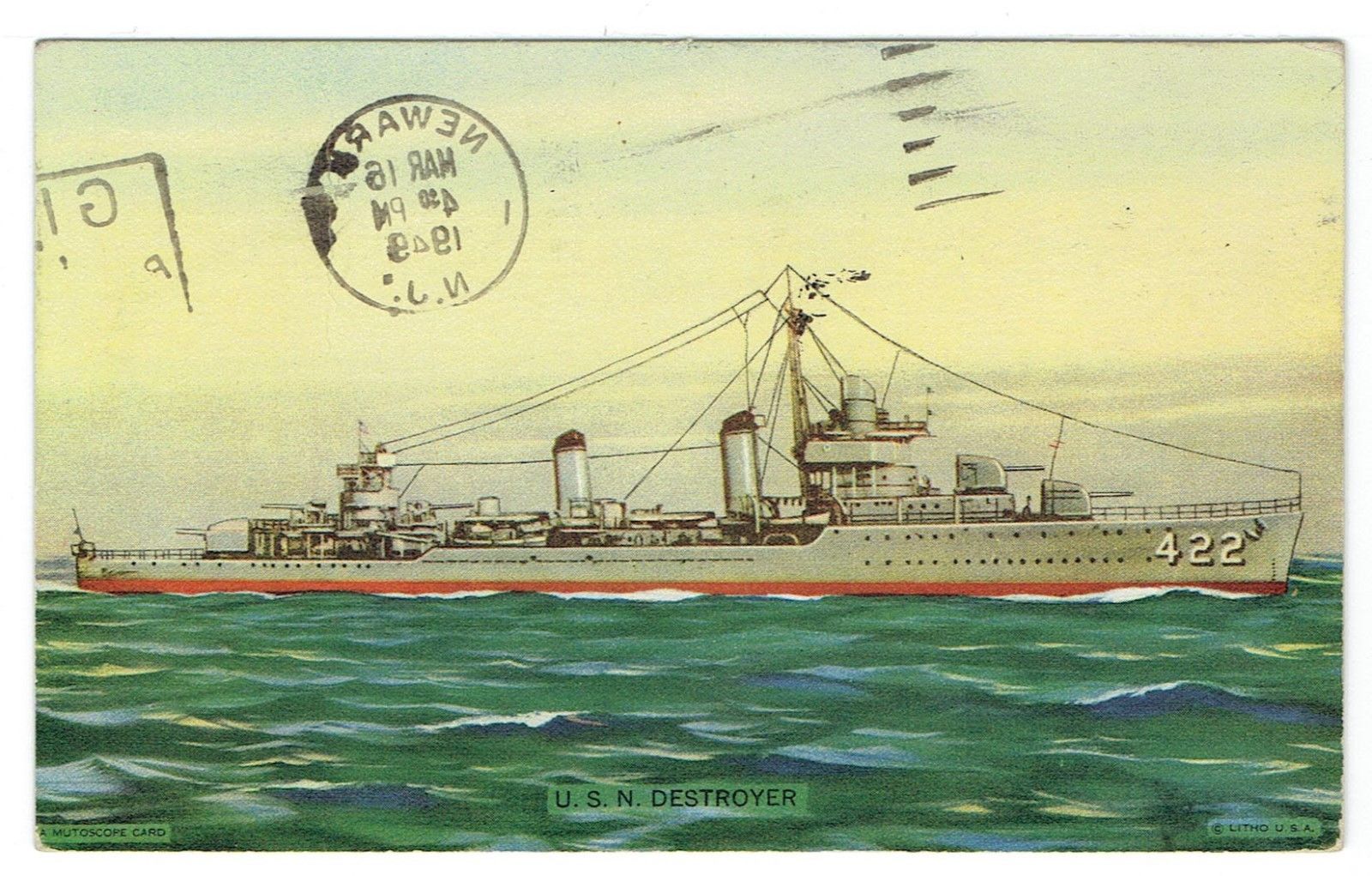 U.S.N. destroyer , etc. , . mutoscope card