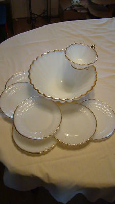 Vintage Milk Glass Chip & Hanging Dip Bowl w/ Gold Rim