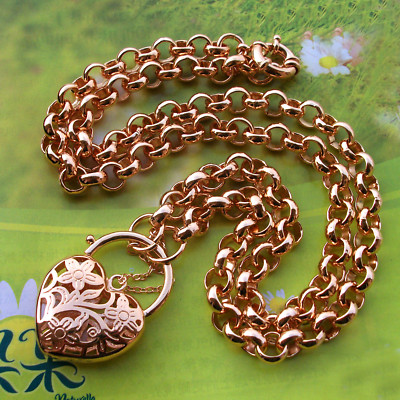Title (ebay affiliate link): 500mm 9KT Solid Yellow Gold GF Heart Padlock Necklace