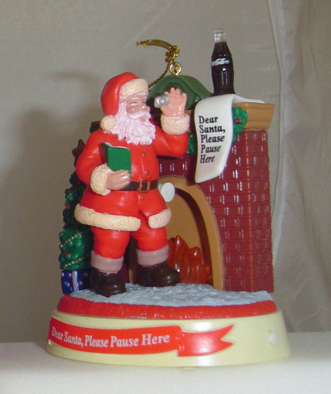 Title (ebay affiliate link): Christmas Ornament Coca Cola Coke Musical Santa ornament lights up