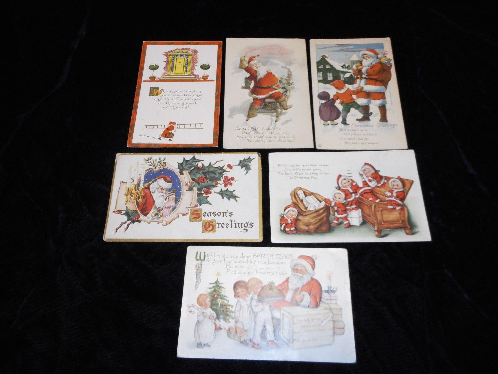 Title (ebay affiliate link): VINTAGE SANTAS WITH CHILDREN~TOYS~LOT OF 6~~CHRISTMAS POSTCARDS~~USED~~ 1920''S~~