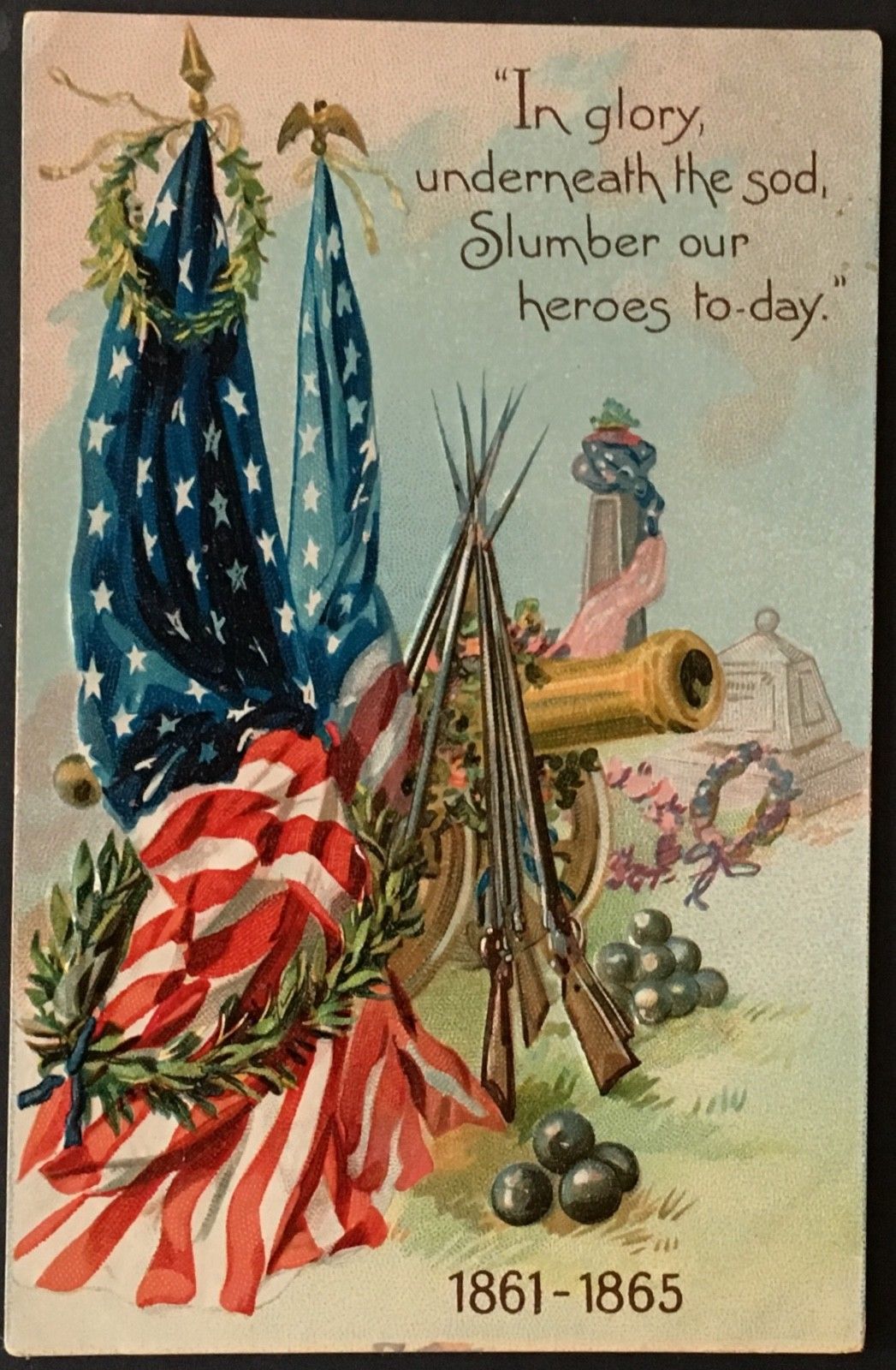 Title (ebay affiliate link): Tuck Decoration Day Civil War Soldiers Memorial ~ US Flag Rifles Cannon Cemetery