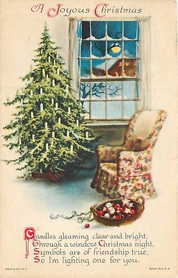 Title (ebay affiliate link): Christmas Artist Clapsaddle (?) Tree Ornaments in Basket Wolf #36 Postcard 1920
