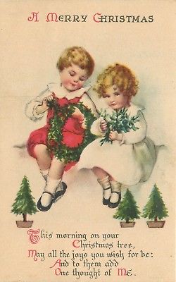 Title (ebay affiliate link): Christmas Artist Clapsaddle ? Children Making Wreaths Wolf #5 ca 1920 Postcard