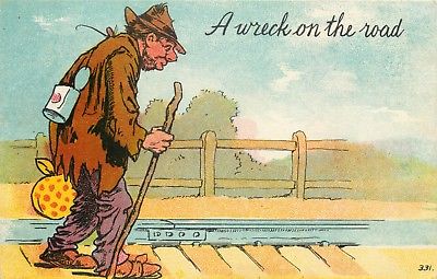 Title (ebay affiliate link): Hobo Tramp A Wreck on the Road Comic 1908 Postcard