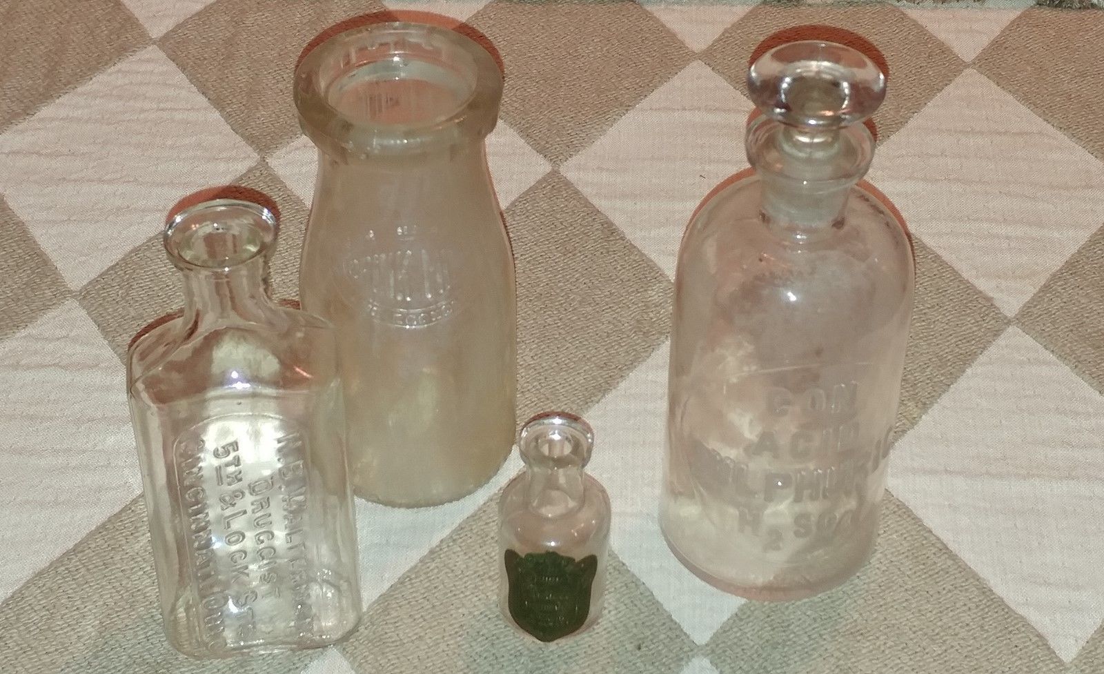Title (ebay affiliate link): Apothecary Glass Bottles Jar Stopper Milk Pharmacy Label Assorted Lot Antique