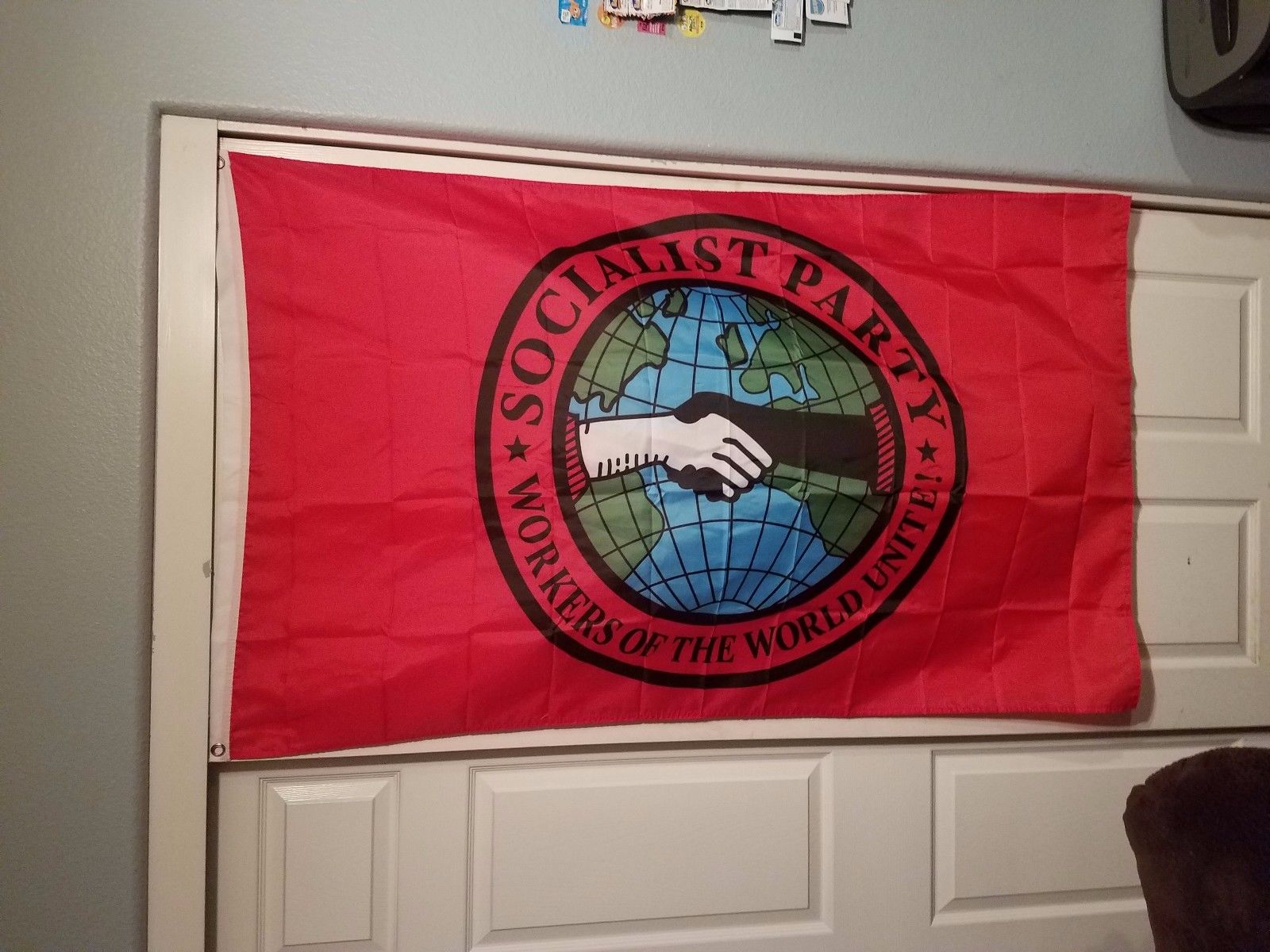Title (ebay affiliate link): Socialist Party Flag 3 X 5 Workers of the World Unite Marxist Communist Debs