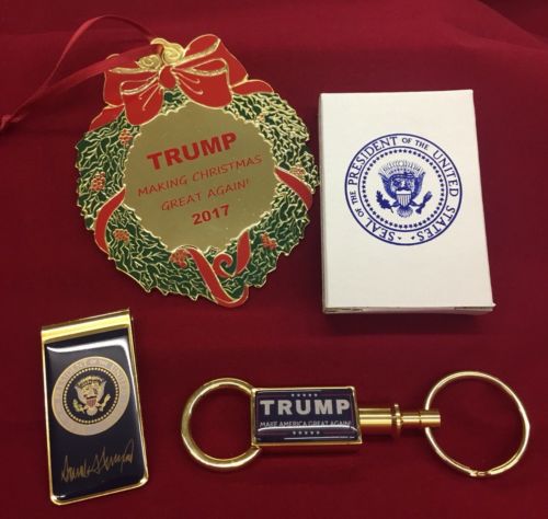 Title (ebay affiliate link): DONALD TRUMP CHRISTMAS ORNAMENT, KEY CHAIN AND MONEY CLIP GREAT GIFT IDEA