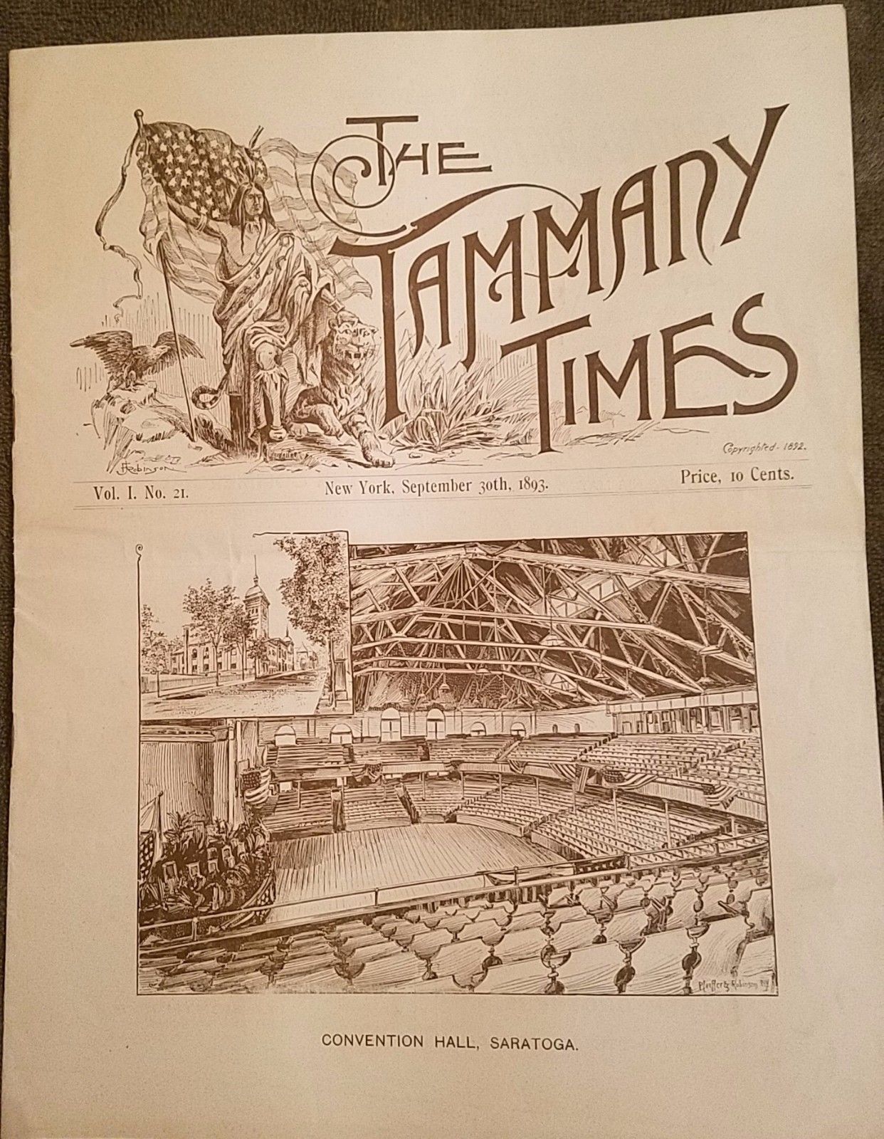 1893 TAMMANY TIMES MAGAZINE 10 1/2" X 13 1/2" NEW YORK POLITICAL
