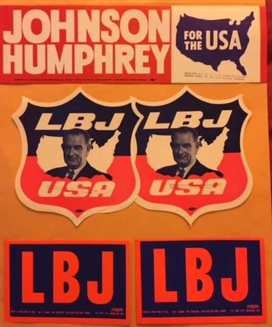 Title (ebay affiliate link): Nice Lot of Five LBJ Stickers and Campaign Paper Items