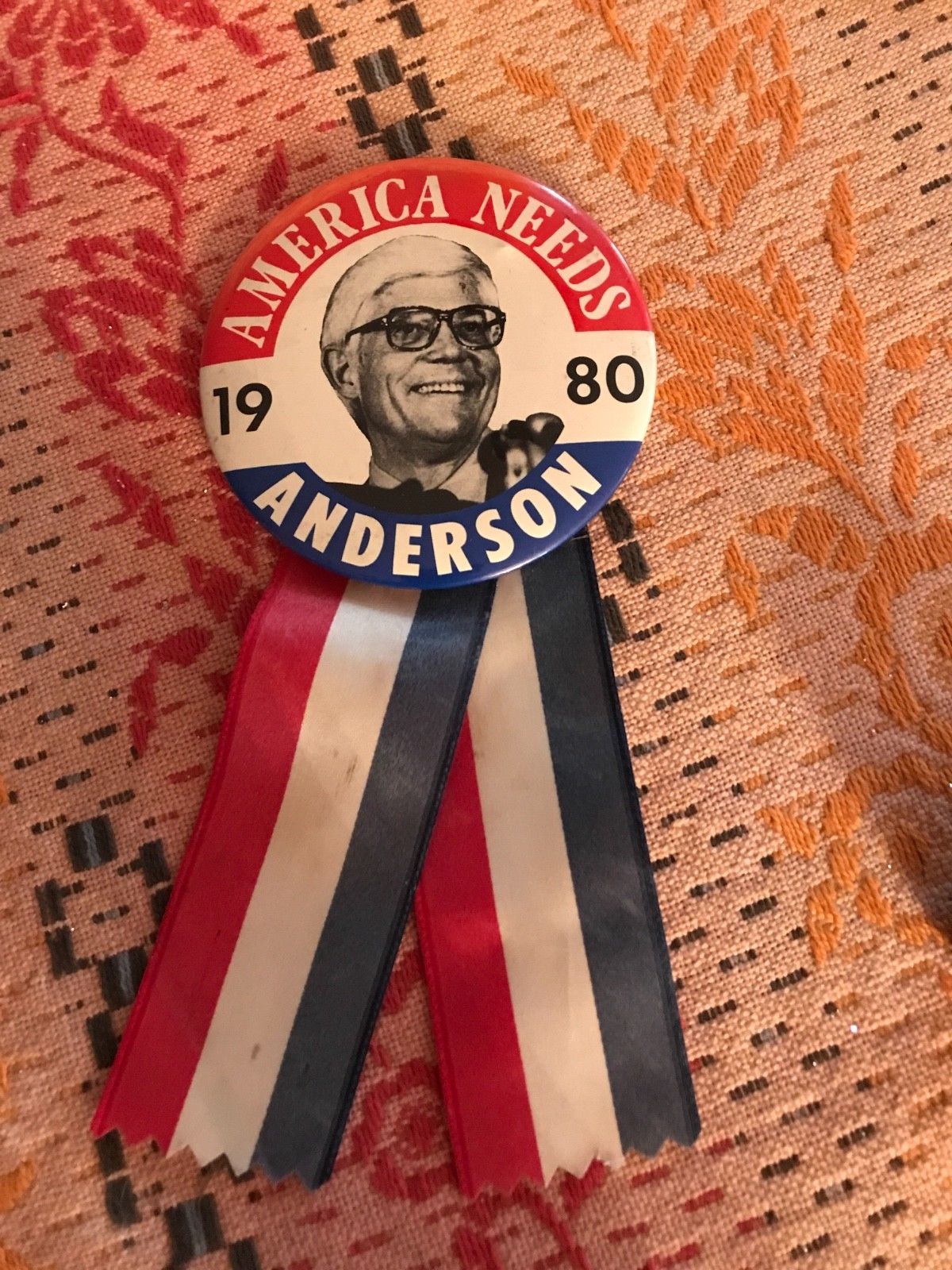 Large 1980 Independent Candidate John Anderson Campaign Button with ribbon(3375)