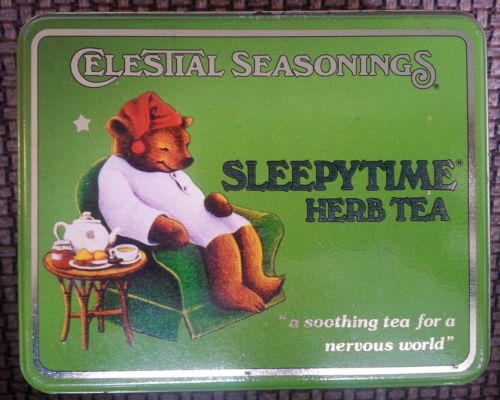 Title (ebay affiliate link): Vintage Celestial Seasoning Sleepytime Herb Tea Box Tin 1982