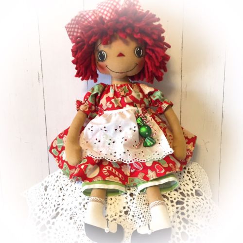 Title (ebay affiliate link): PriMiTiVe FoLk ArT DoLL RaGGeDy ANn ChRisTmAs AnniE GiNgeRBreAd CaNDy OrNIE OOAK