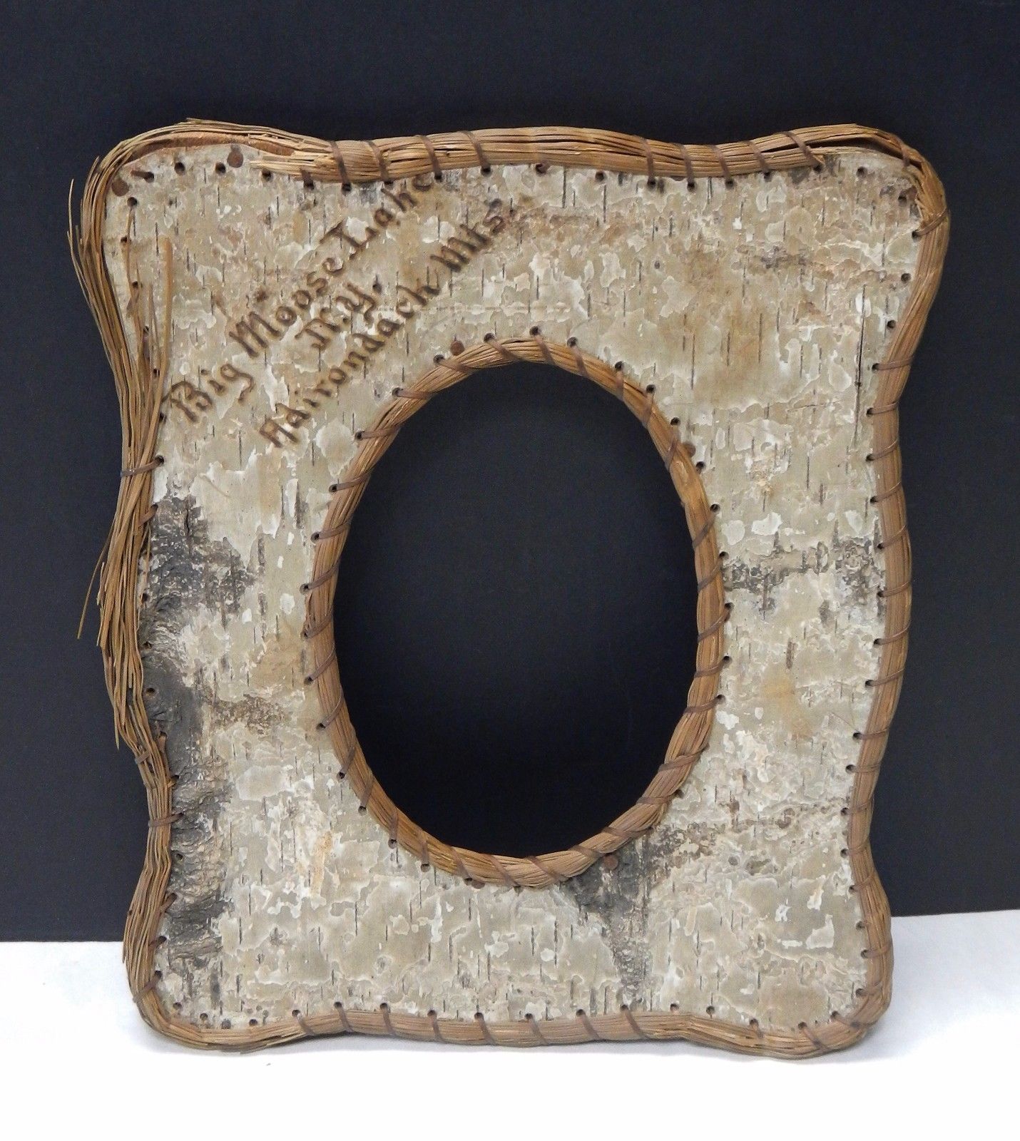 Title (ebay affiliate link): Vintage bark pine needles wood frame Big Moose Lake NY Adirondack Mts primitive